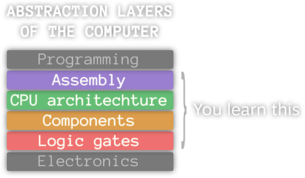 In this challenging puzzle game, you build a computer from scratch and program it. It is a journey through the layers of abstractions of the computer. The game begins when you are abducted by aliens who are testing your intelligence, and from here a lighthearted sci-fi plot evolves.