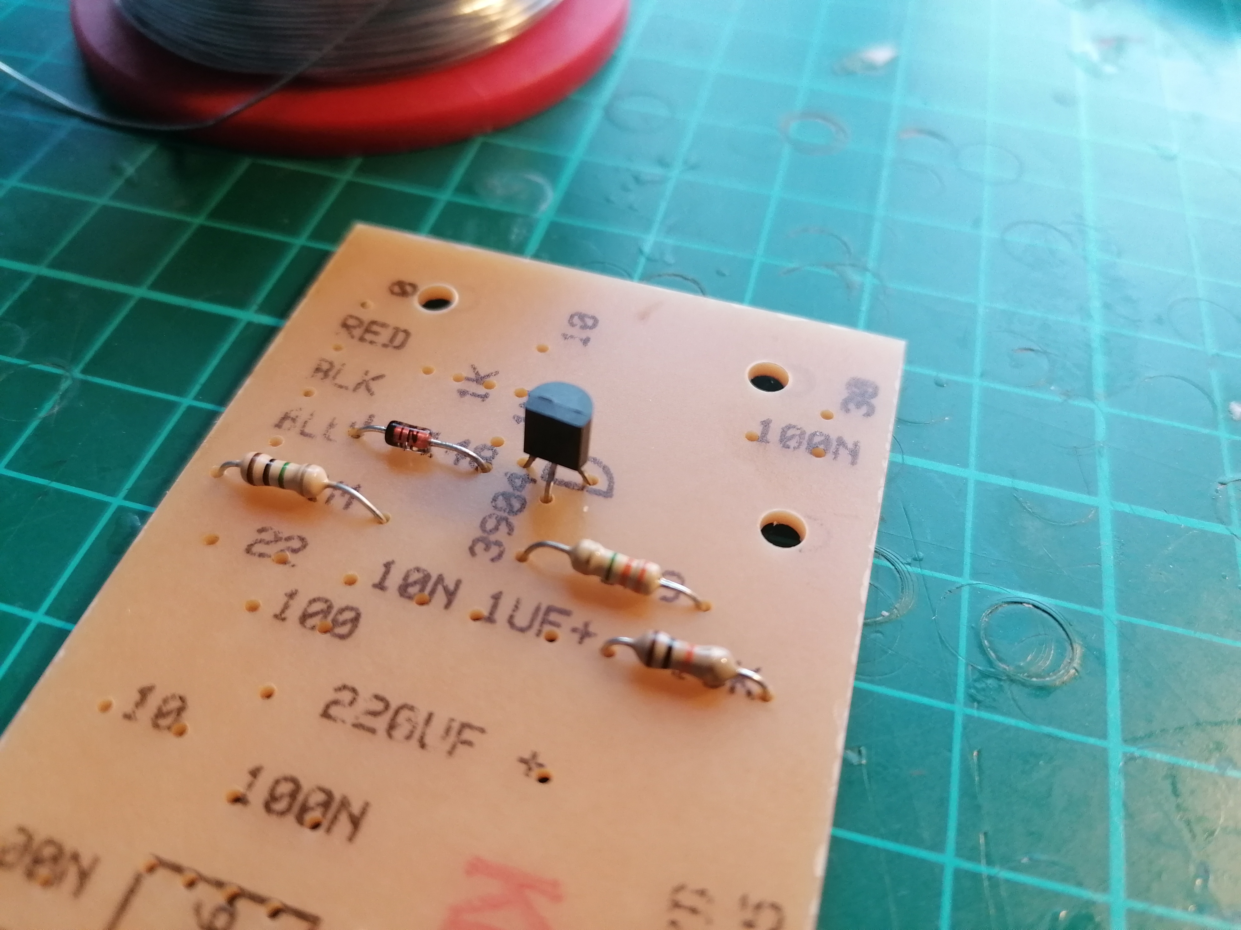The footprint for the transistor requires the "base" leg to be bent the opposite way to what you'd normally expect, which confused me for a few minutes: