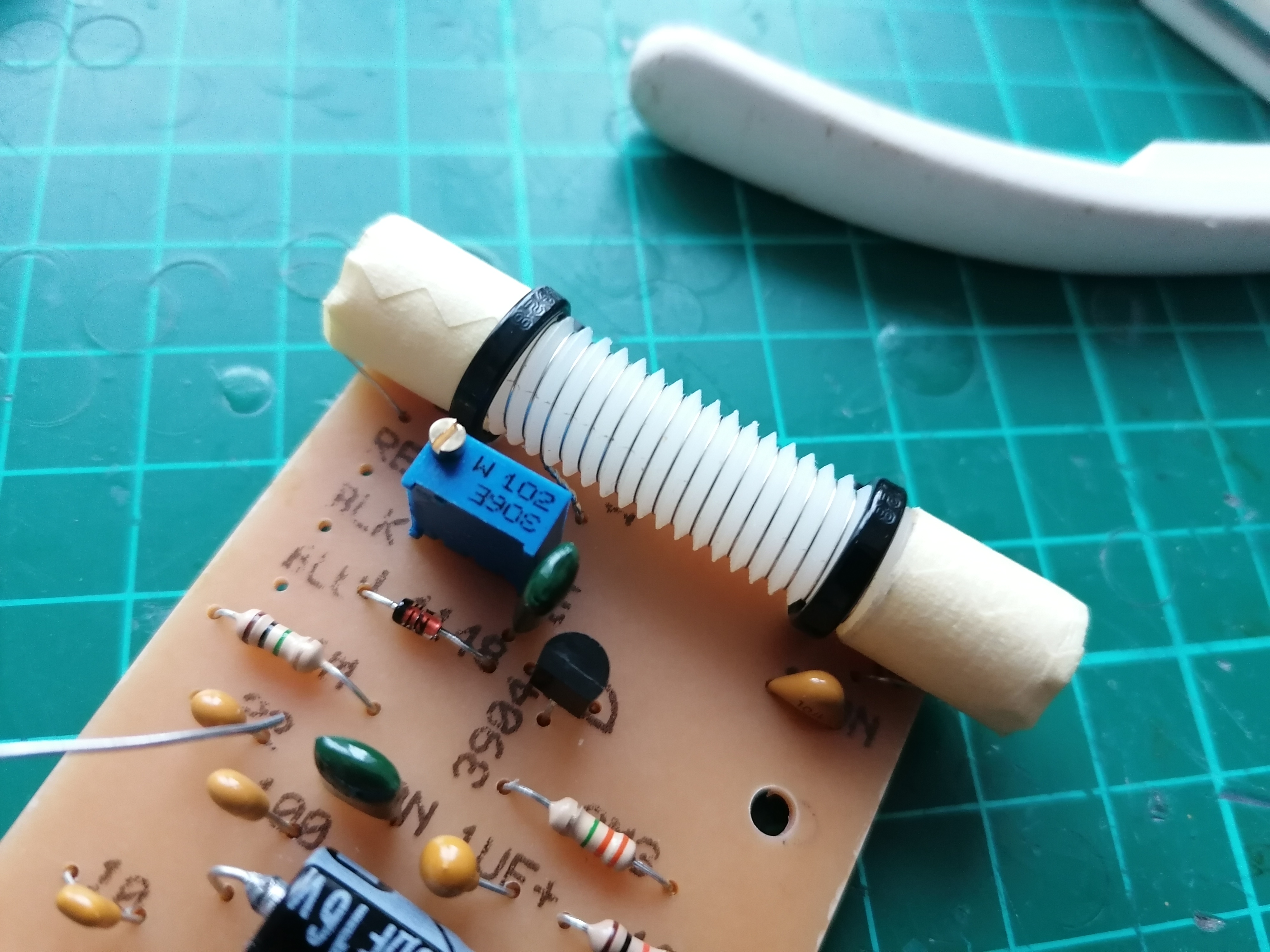 The coil seems to be wound around a piece of plastic M10 threaded rod: